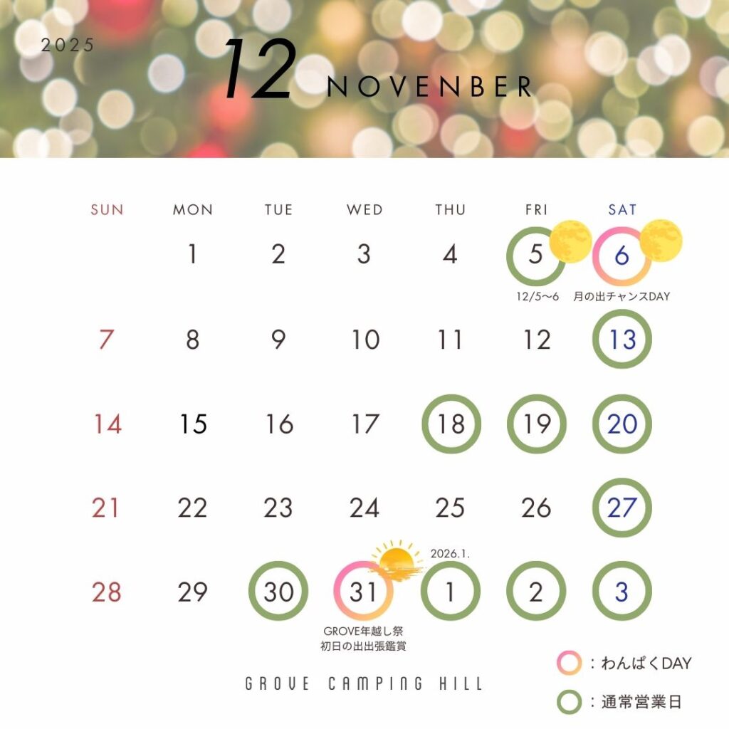 11〜12月・年末年始の営業日カレンダーを公開しました