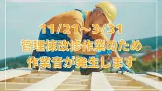 お知らせ2025年11月20日11/21〜3/31 管理棟改修作業により作業音が発生します